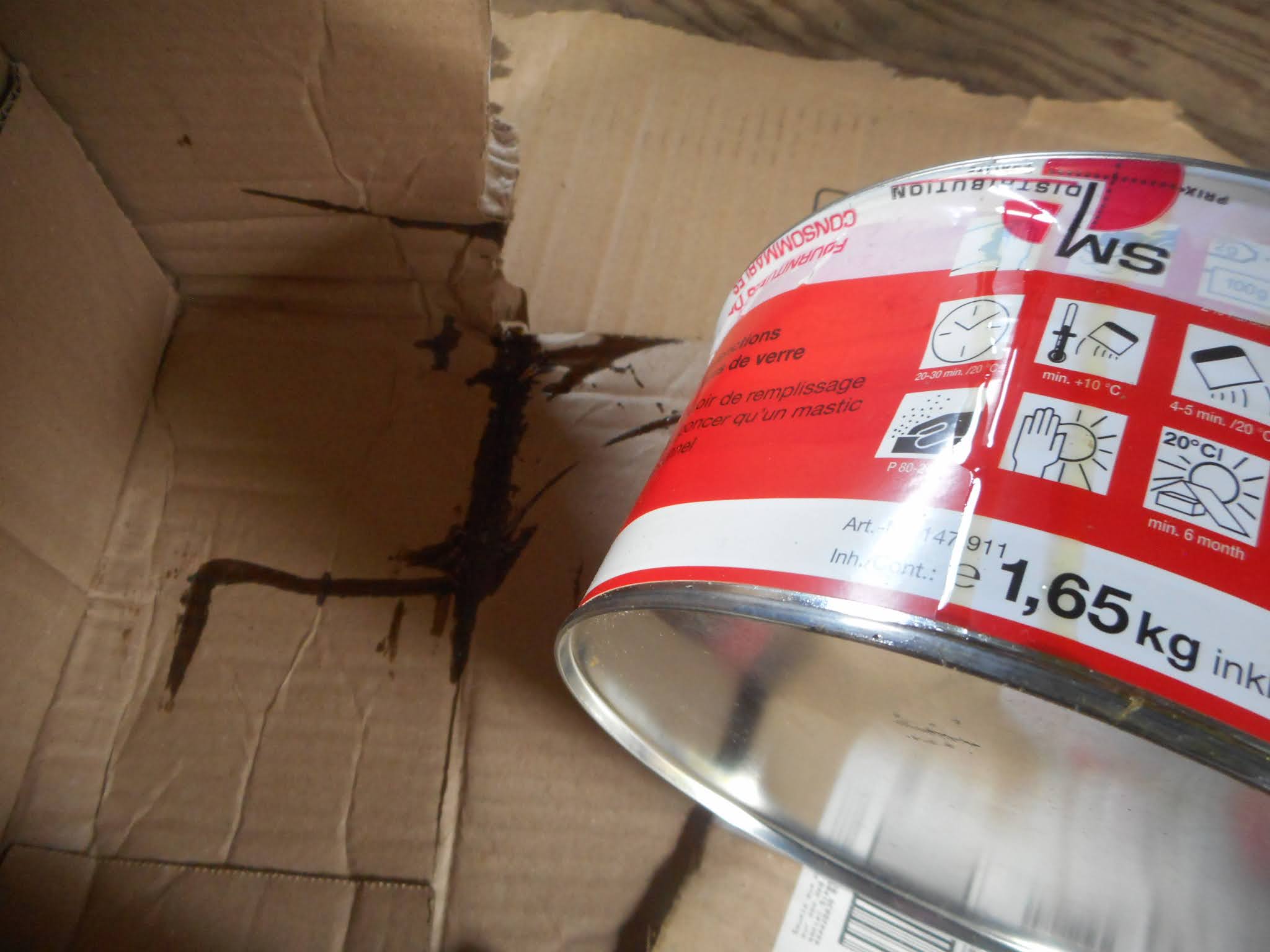 Bonjour, boites abimées, fuyantes, stock ou transporteur ? toujours est il, l entreprise SM , n en a rien à faire ! ?? SYMPAS ET MERCI !!! les photos parlerons d elles mèmes ! ( j ai utilisée les produits parfait )